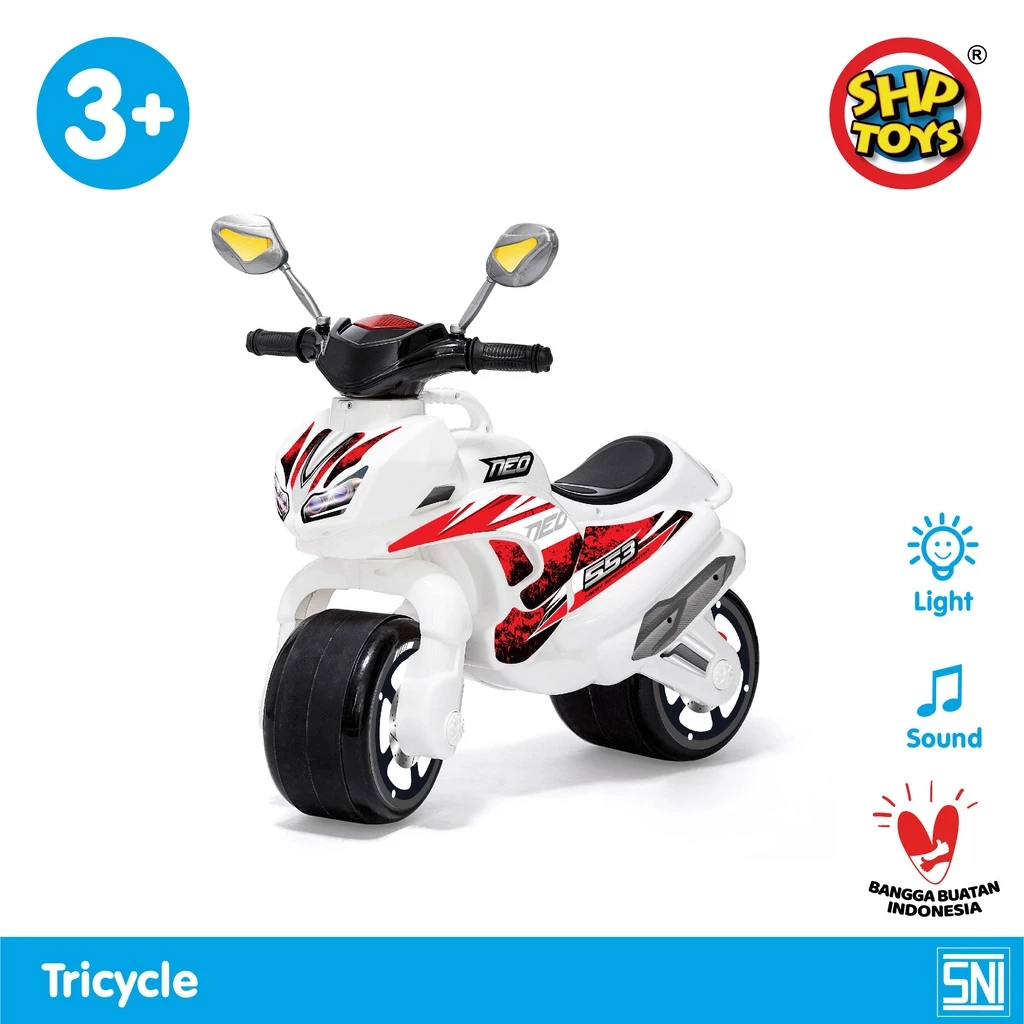 Gagahnya NEO SHP Toys pasti membuat si kecil lebih keren saat bermain! Roda nya yang lebar membantu si kecil melatik keseimbangan serta dilengkapi dengan suara musik dan lampu sebagai teman bermain yang akan menambah keceriaan si kecil ketika bermain.